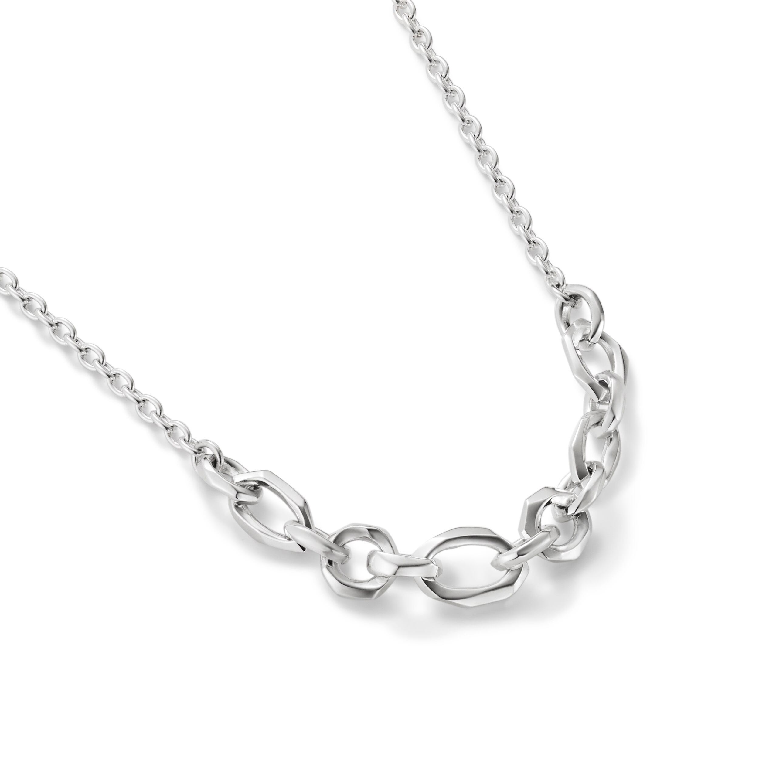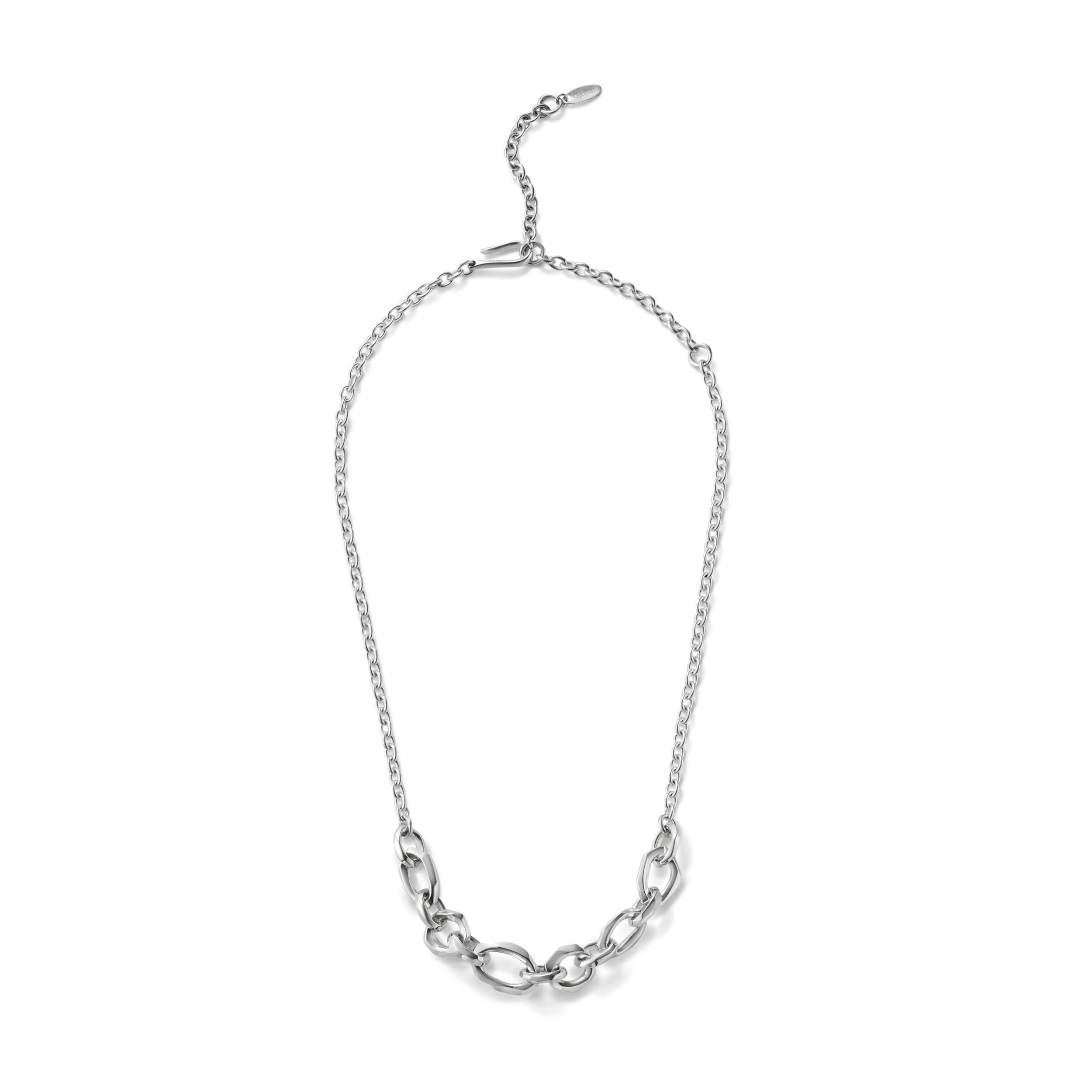 ガルニのシグネチャー商品「クロッケリー」の繊細な曲線、絶妙なエッジを施したチェーンネックレスです。 Crockery Mix Chainのデザインはそのままに、全体のサイズを調整して程よいリュームに仕上げています。