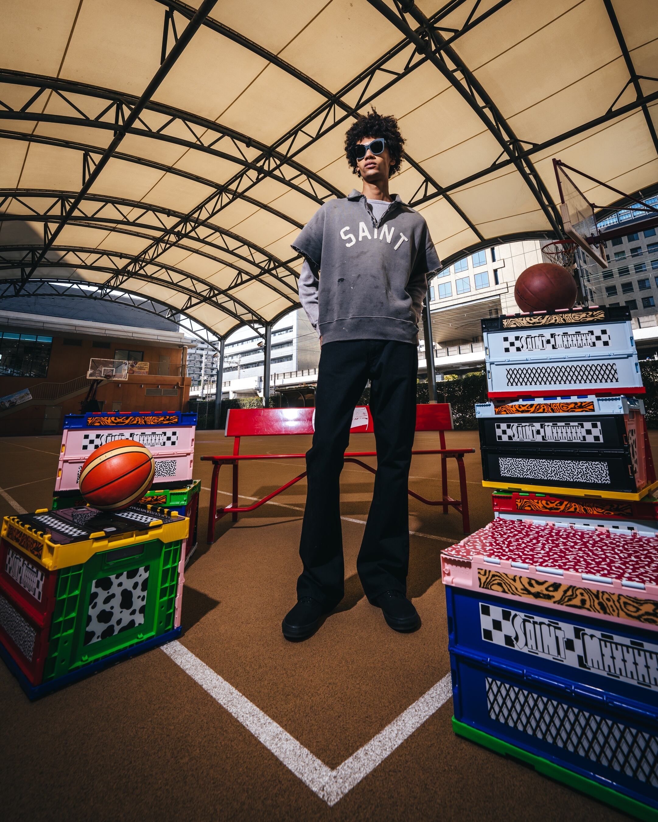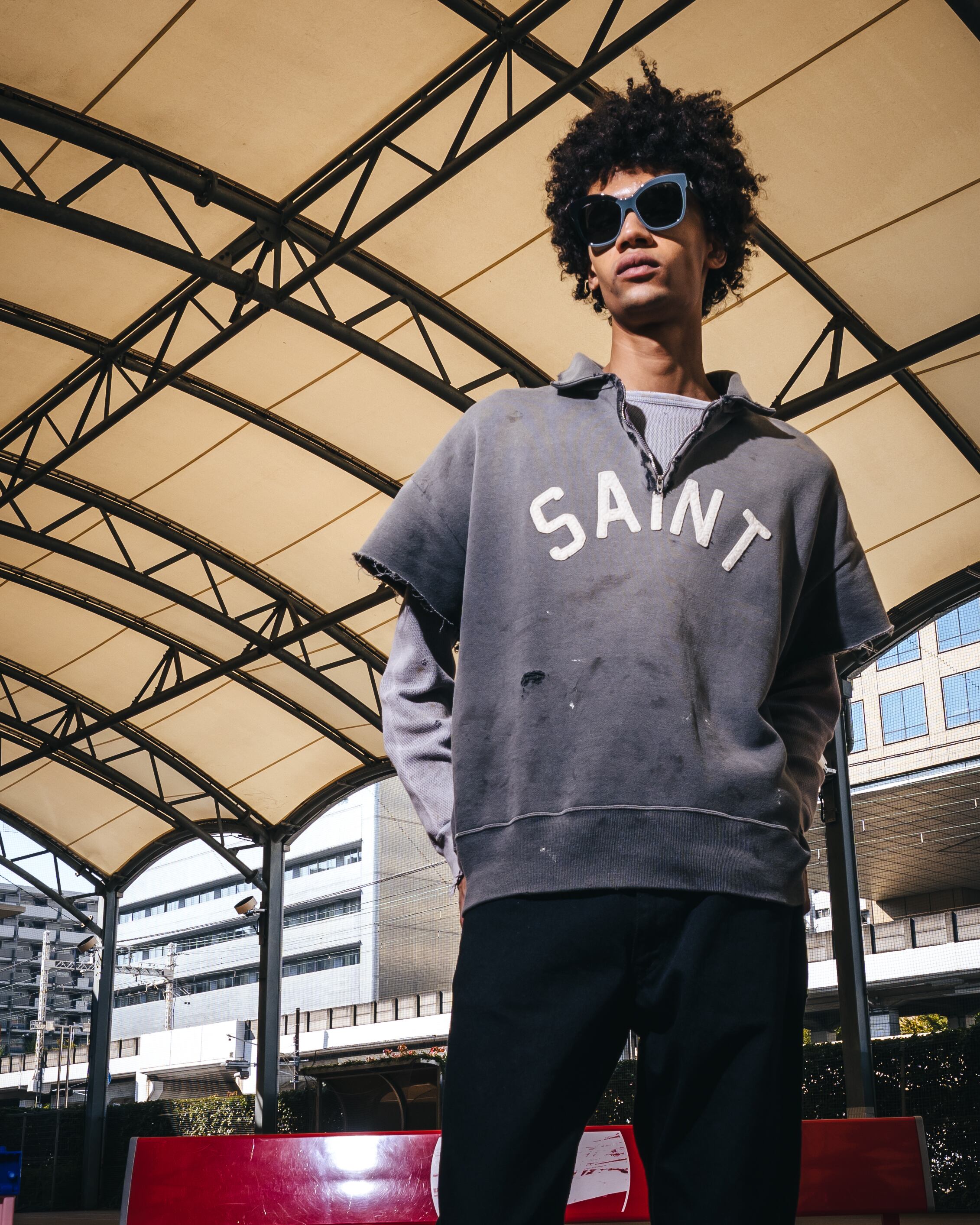 SAINT Mxxxxxx SM052 SAINT SS HALF ZIP SWEAT COLOR : BLACK SIZE : M、L