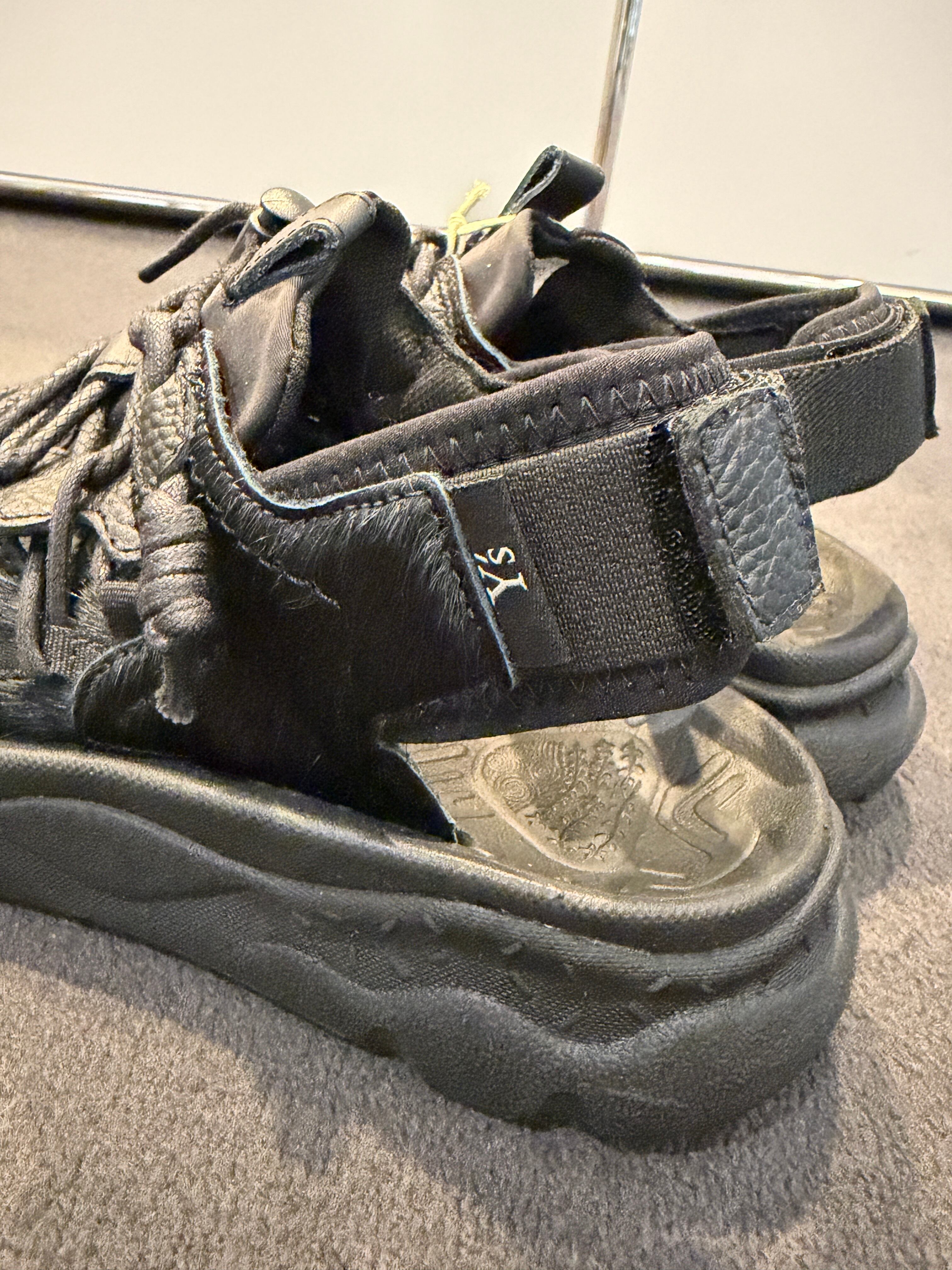 Flower MOUNTAINの特徴である多色表現を「単色」で解釈し、複数の素材を組み合わせる事で生まれる質感と色味の差で奥行きを表現しています。素材は、シュリンクレザー、ヘアオン、ナイロンで構成。クッション性と弾力に優れたインソール、どのような場所でもグリップする軽量なグリップソールによる快適な履き心地です。繊細なハンドクラフトによる仕上げが、特有の雰囲気と質感を完成させます。